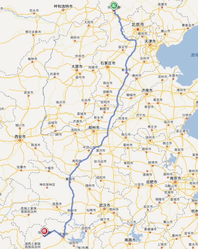 現(xiàn)在位置:張家界旅行社->交通指南->自駕車(chē)路線 -> 張家口到張家界自駕車(chē)線路,張家口去張家界自己開(kāi)車(chē)要多長(zhǎng)時(shí)間,有多少公里