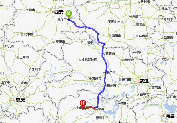 商洛去張家界自駕車自助游線路圖全程高速):