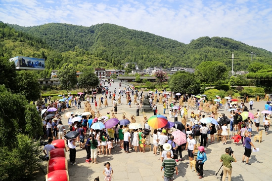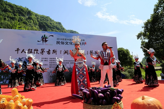 7月29日上午9點(diǎn)30分,由張家界市人民政府主辦,張家界市委宣傳部、市旅游和外事僑務(wù)委員會、市文體廣電新聞出版局、武陵源區(qū)人民政府承辦,黃龍洞景區(qū)協(xié)辦的“絕版張家界,最炫民族風(fēng)”張家界民俗活動月第三場活動在黃龍洞景區(qū)啟動。現(xiàn)場以土家人慶祝豐收的鼓舞拉開序幕,土家鼓舞歡悅的節(jié)奏,夸張的舞姿開場就吸引了幾千游人和當(dāng)?shù)厝擞^看。草根夫妻檔歌手,張家界“山水組合許勇、舒維亮麗的服飾,野性的嗓音……”以一首《我在高山唱》歌曲,征服現(xiàn)場游客,贏得雷鳴般的叫好聲。